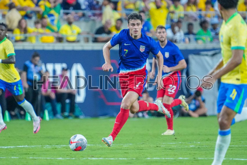 Orlando, Florida, June 12, 2024, USA player Gio Reyna #7 runs up field at Camping World Stadium. (Photo Credit: Marty Jean-Louis)