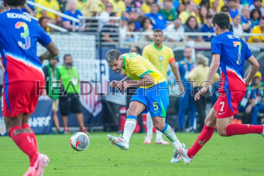 Orlando, Florida, June 12, 2024, Brazil player Bruno Guimaraes #5 makes a pass at Camping World Stadium. (Photo Credit: Marty Jean-Louis)