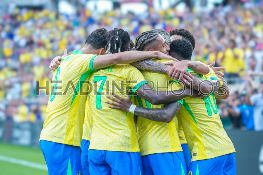 Orlando, Florida, June 12, 2024, Brazil players celebrate after a goal at Camping World Stadium. (Photo Credit: Marty Jean-Louis)