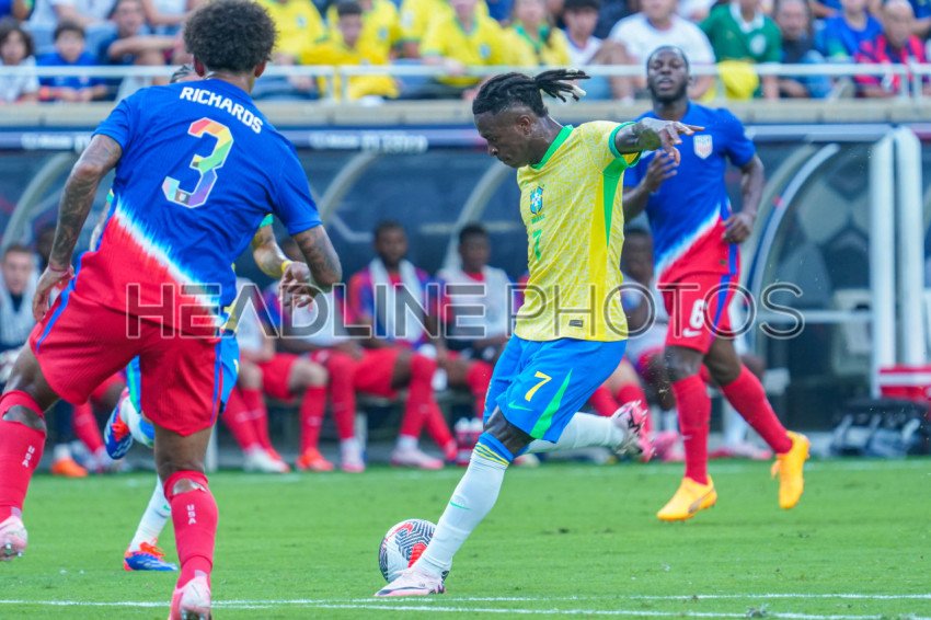 Orlando, Florida, June 12, 2024, Brazil forward Junior Vinicius #7 attempt to score at Camping World Stadium. (Photo Credit: Marty Jean-Louis)