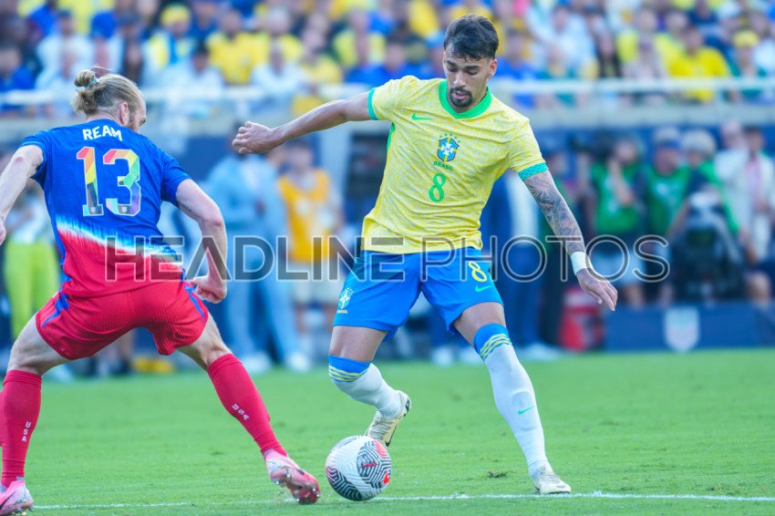 Orlando, Florida, June 12, 2024, Brazil midfielder Lucas Paqueta #8 fight to keep the ball at Camping World Stadium. (Photo Credit: Marty Jean-Louis)