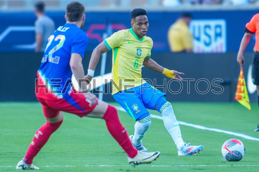 Orlando, Florida, June 12, 2024, Brazil defender Wendell #6 makes a pass at Camping World Stadium. (Photo Credit: Marty Jean-Louis)