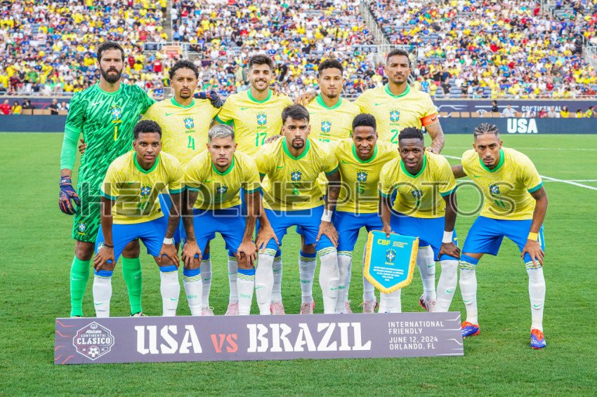 Orlando, Florida, June 12, 2024, Brazil starting lineup players at Camping World Stadium. (Photo Credit: Marty Jean-Louis)