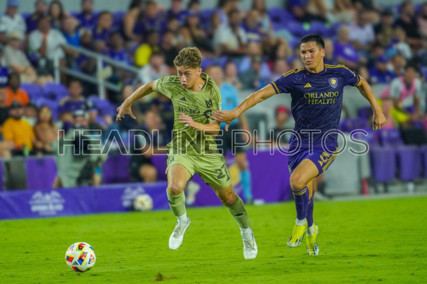 Orlando, Florida, USA, June 15, 2024, LA Galaxy player Nathan Ordaz #27 runs upf field at Inter&Co Stadium. (Photo Credit: Marty Jean-Louis)