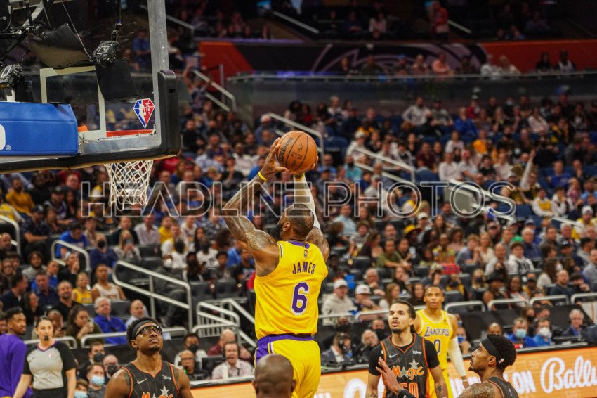 Orlando, Florida, USA, January 21, 2022, Los Angeles Lakers player Lebron James #6 takes a shot during the fourth Quarter at the Amway Center. (Photo Credit: Marty Jean-Louis)