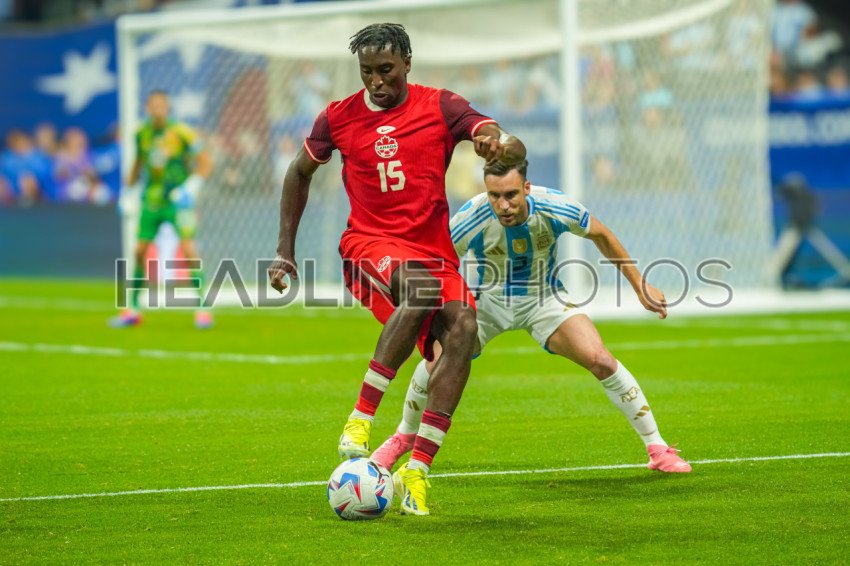 Atlanta, Georgia, USA, June 20, 2024, Canada defender Moïse Bombito #15 controls the ball during the 2024 Copa America at Mercedes-Benz Stadium. (Photo Credit: Marty Jean-Louis)