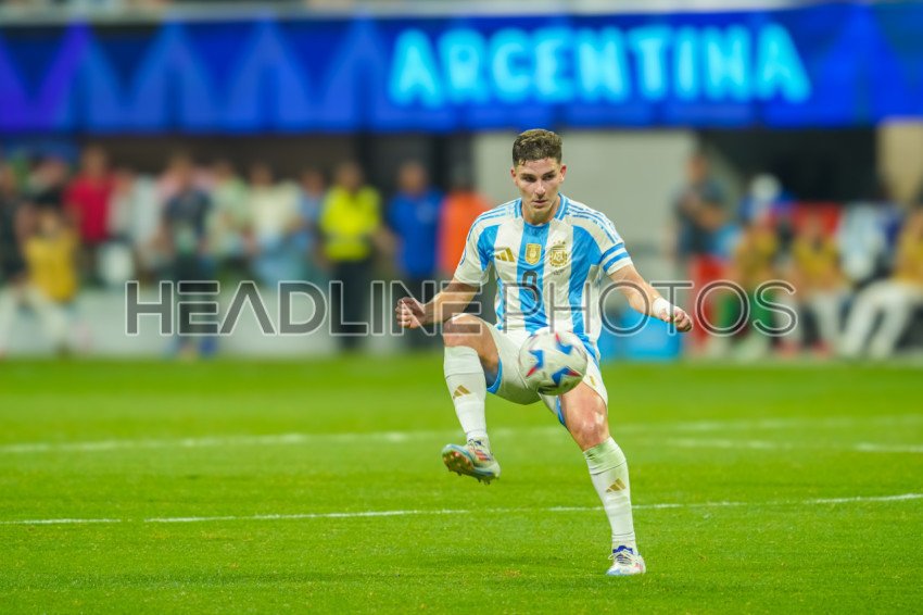 Atlanta, Georgia, USA, June 20, 2024, Argentina forward Julián Álvarez #9 receives a pass during the 2024 Copa America at Mercedes-Benz Stadium. (Photo Credit: Marty Jean-Louis)