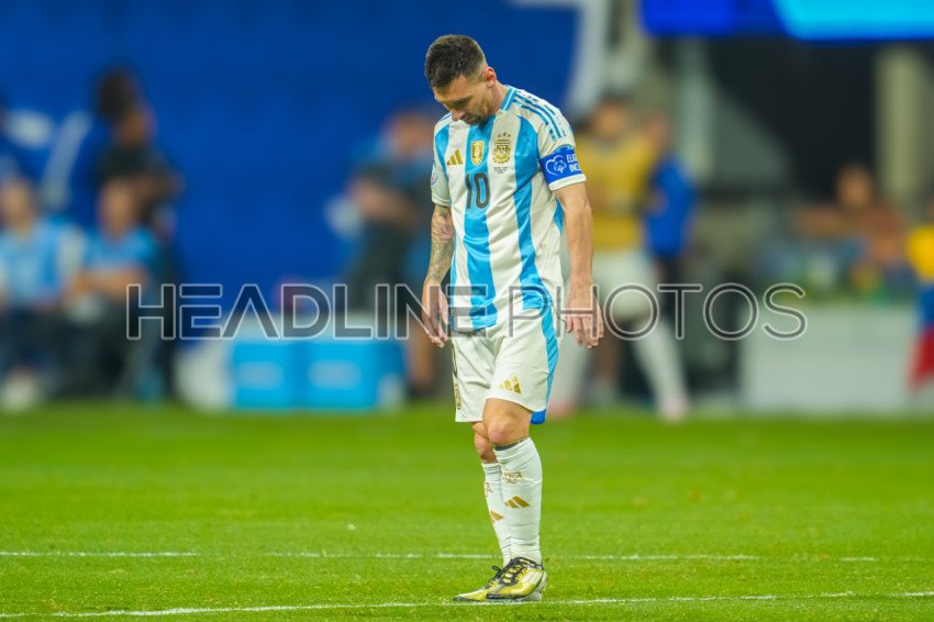 Atlanta, Georgia, USA, June 20, 2024, Argentina forward Lionel Messi #10 with his head down during the 2024 Copa America at Mercedes-Benz Stadium. (Photo Credit: Marty Jean-Louis)