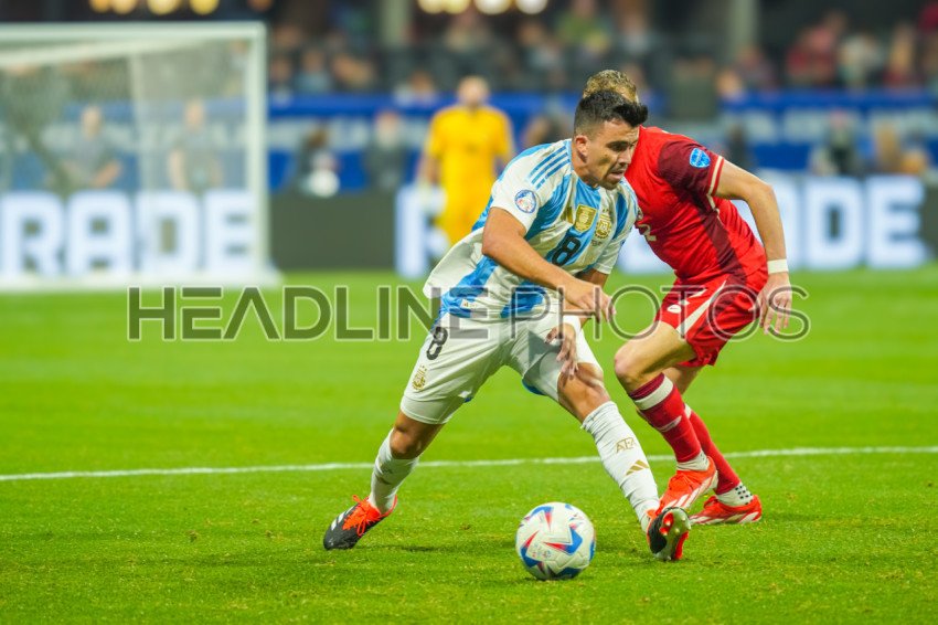 Atlanta, Georgia, USA, June 20, 2024, Argentina defender Marcos Acuña #8 fight to keep the ball during the 2024 Copa America at Mercedes-Benz Stadium. (Photo Credit: Marty Jean-Louis)