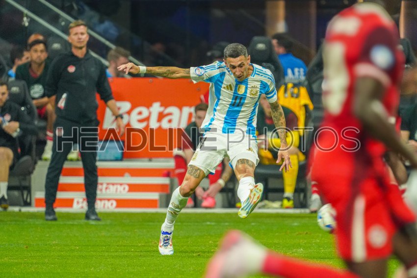 Atlanta, Georgia, USA, June 20, 2024, Argentina's Ángel Di María #11 makes a pass during the 2024 Copa America at Mercedes-Benz Stadium. (Photo Credit: Marty Jean-Louis)