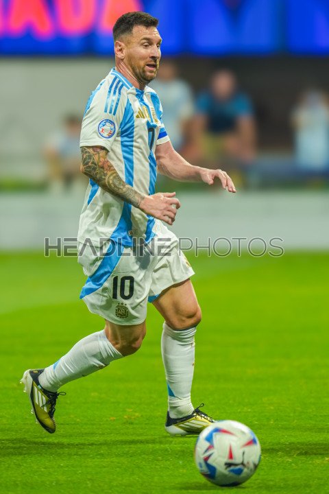 Atlanta, Georgia, USA, June 20, 2024, Argentina forward Lionel Messi #10 runs up field during the 2024 Copa America at Mercedes-Benz Stadium. (Photo Credit: Marty Jean-Louis)