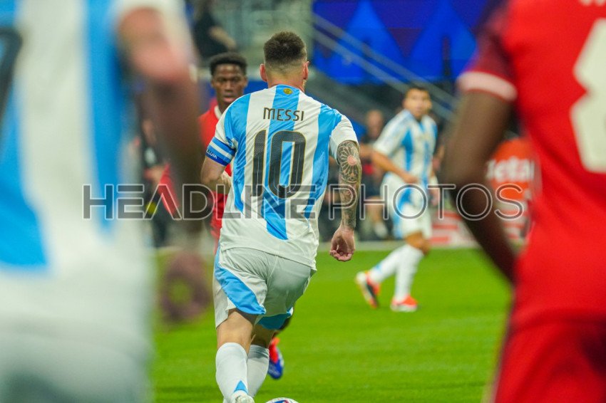 Atlanta, Georgia, USA, June 20, 2024, Argentina forward Lionel Messi #10 runs up field during the 2024 Copa America at Mercedes-Benz Stadium. (Photo Credit: Marty Jean-Louis)