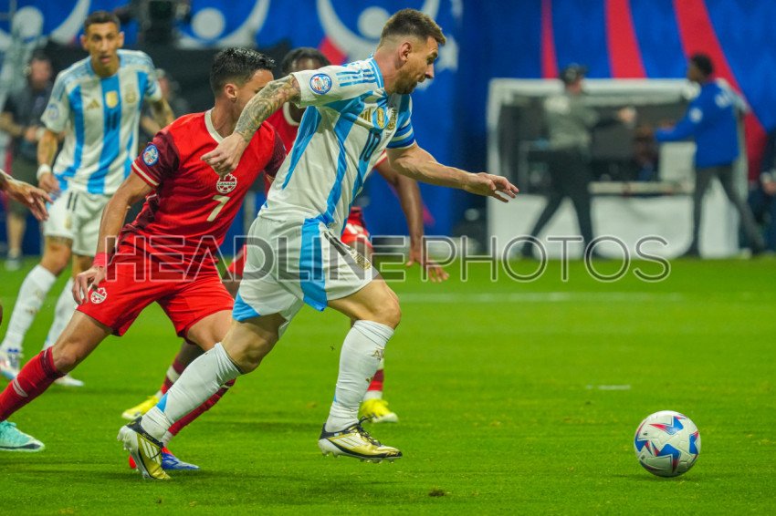 Atlanta, Georgia, USA, June 20, 2024, Argentina forward Lionel Messi #10 attempt to score during the 2024 Copa America at Mercedes-Benz Stadium. (Photo Credit: Marty Jean-Louis)