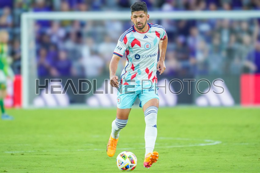 Orlando, Florida, USA, June 22, 2024, Chicago Fire defender Mauricio Pineda #22 runs up field at Inter&Co Stadium. (Photo Credit: Marty Jean-Louis)