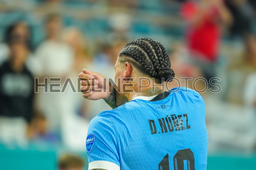 Miami Gardens, Florida, USA, June 20, 2024, Uruguay forward Darwin Núñez #19 celebrate after scoring during the 2024 Copa America at the Hard Rock Stadium. (Photo Credit: Marty Jean-Louis)
