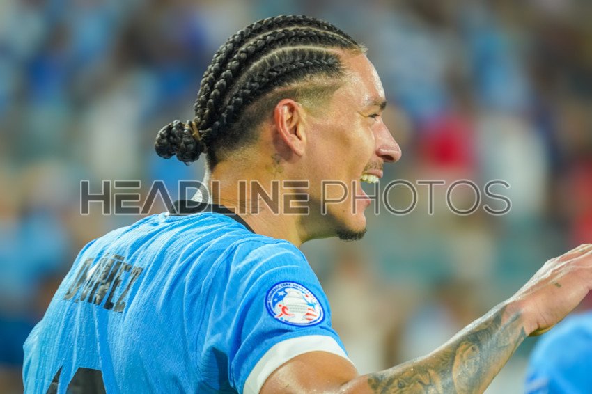 Miami Gardens, Florida, USA, June 20, 2024, Uruguay forward Darwin Núñez #19 celebrate after scoring during the 2024 Copa America at the Hard Rock Stadium. (Photo Credit: Marty Jean-Louis)