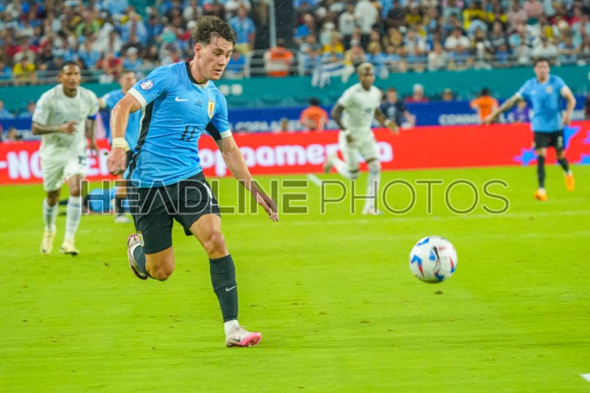 Miami Gardens, Florida, USA, June 20, 2024, Uruguay player Facundo Pellistri #11 runs after the pass during the 2024 Copa America at the Hard Rock Stadium. (Photo Credit: Marty Jean-Louis)