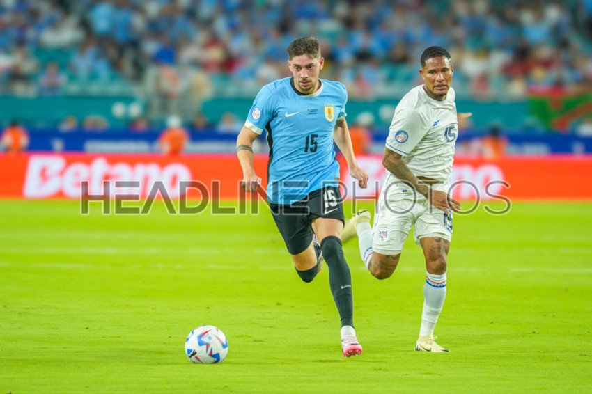 Miami Gardens, Florida, USA, June 20, 2024, Uruguay player Federico Valverde #15 controls the ball during the 2024 Copa America at the Hard Rock Stadium. (Photo Credit: Marty Jean-Louis)