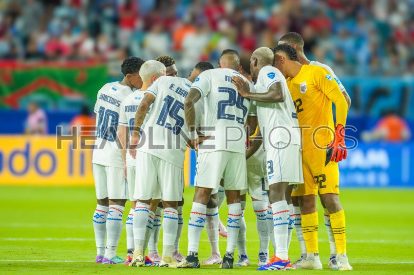 Miami Gardens, Florida, USA, June 20, 2024, Panama players huddle during the 2024 Copa America at the Hard Rock Stadium. (Photo Credit: Marty Jean-Louis)
