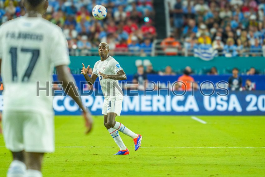 Miami Gardens, Florida, USA, June 20, 2024, Panama player José Córdoba #3 makes a header during the 2024 Copa America at the Hard Rock Stadium. (Photo Credit: Marty Jean-Louis)