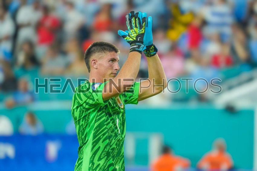 Miami Gardens, Florida, USA, June 20, 2024, Uruguay goalkeeper Sergio Rochet #1 waving to fans during the 2024 Copa America at the Hard Rock Stadium. (Photo Credit: Marty Jean-Louis)
