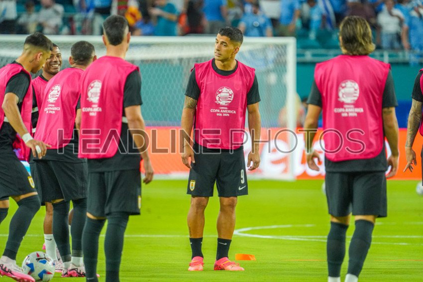 Miami Gardens, Florida, USA, June 20, 2024, Uruguay players enter the field for warm up during the 2024 Copa America at the Hard Rock Stadium. (Photo Credit: Marty Jean-Louis)