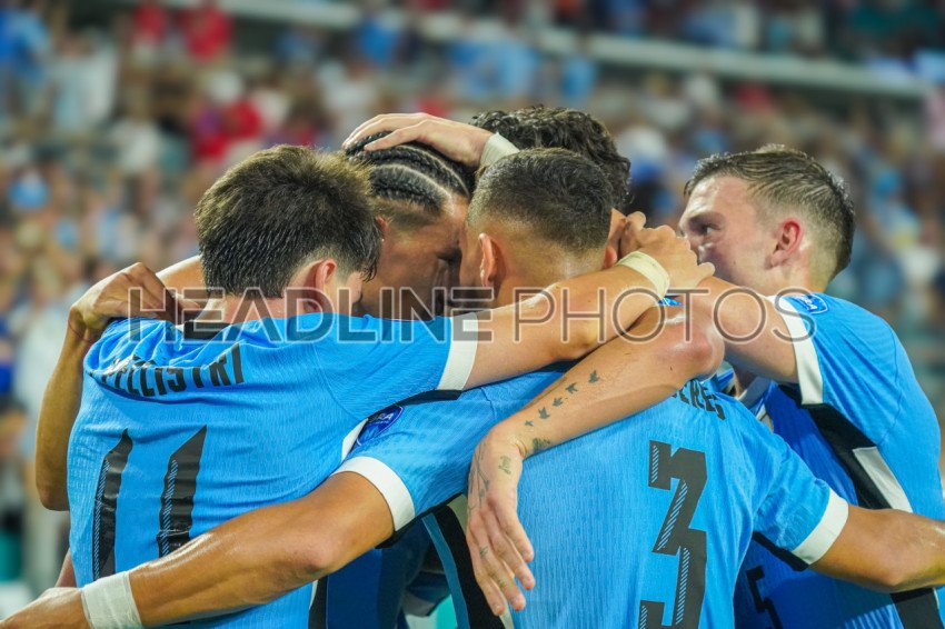 Miami Gardens, Florida, USA, June 20, 2024, Uruguay players celebrate goal during the 2024 Copa America at the Hard Rock Stadium. (Photo Credit: Marty Jean-Louis)