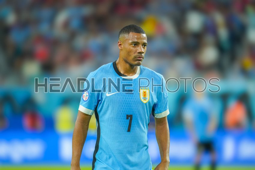 Miami Gardens, Florida, USA, June 20, 2024, Uruguay player Nicolás de la Cruz #7 during the 2024 Copa America at the Hard Rock Stadium. (Photo Credit: Marty Jean-Louis)