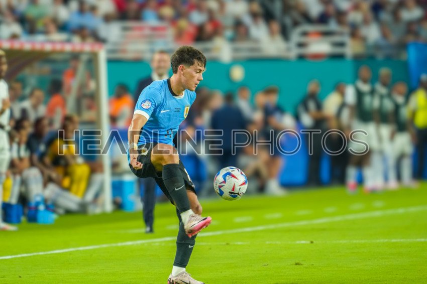 Miami Gardens, Florida, USA, June 20, 2024, Uruguay player Facundo Pellistri #11 receives a pass during the 2024 Copa America at the Hard Rock Stadium. (Photo Credit: Marty Jean-Louis)
