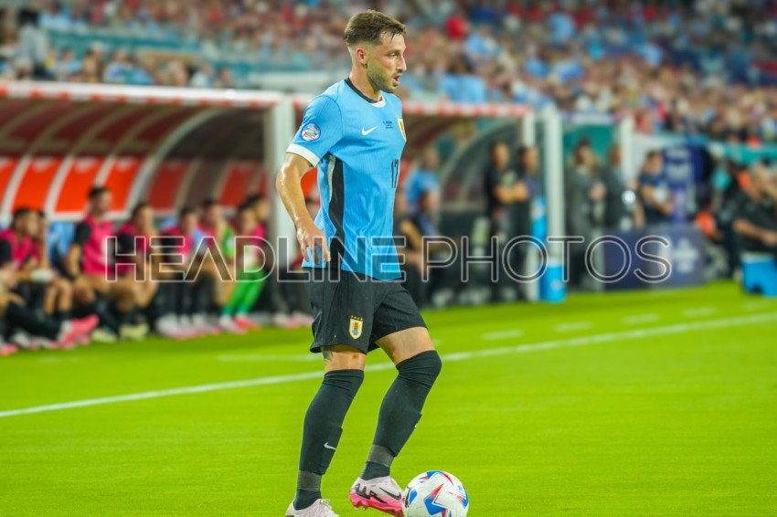 Miami Gardens, Florida, USA, June 20, 2024, Uruguay defender Matías Viña #17 during the 2024 Copa America at the Hard Rock Stadium. (Photo Credit: Marty Jean-Louis)