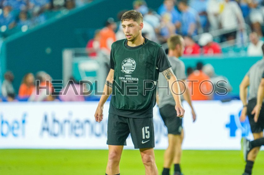 Miami Gardens, Florida, USA, June 20, 2024, Uruguay player Federico Valverde #15 warming up during the 2024 Copa America at the Hard Rock Stadium. (Photo Credit: Marty Jean-Louis)