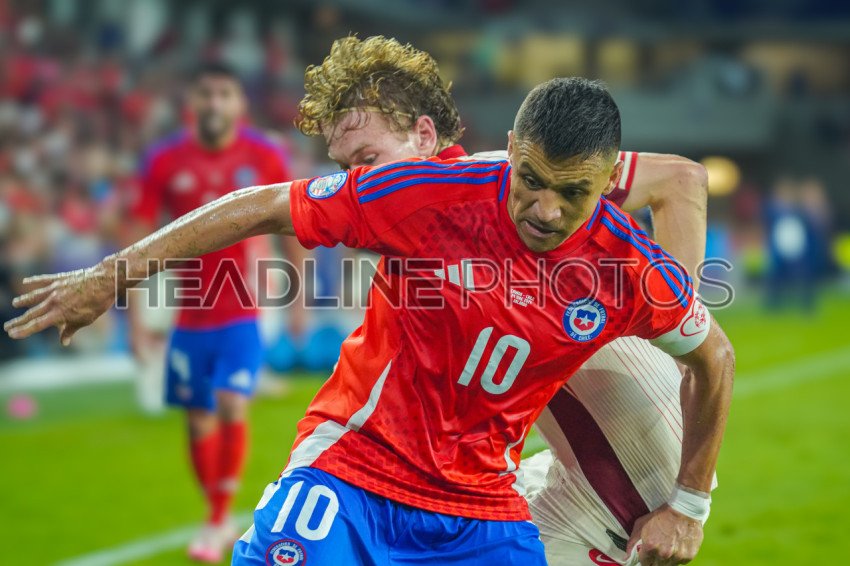 Orlando, Florida, USA, June 20, 2024, Chile forward Alexis Sánchez #10 attempt to score during the 2024 Copa America at Inter&Co Stadium. (Photo Credit: Marty Jean-Louis)