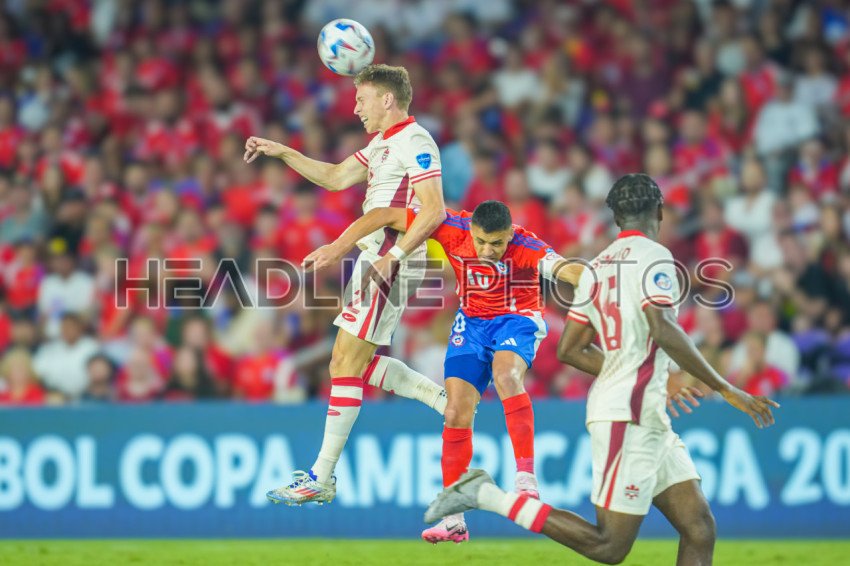 Orlando, Florida, USA, June 20, 2024, Canada's Alistair Johnston #2 wins the header during the 2024 Copa America at Inter&Co Stadium. (Photo Credit: Marty Jean-Louis)