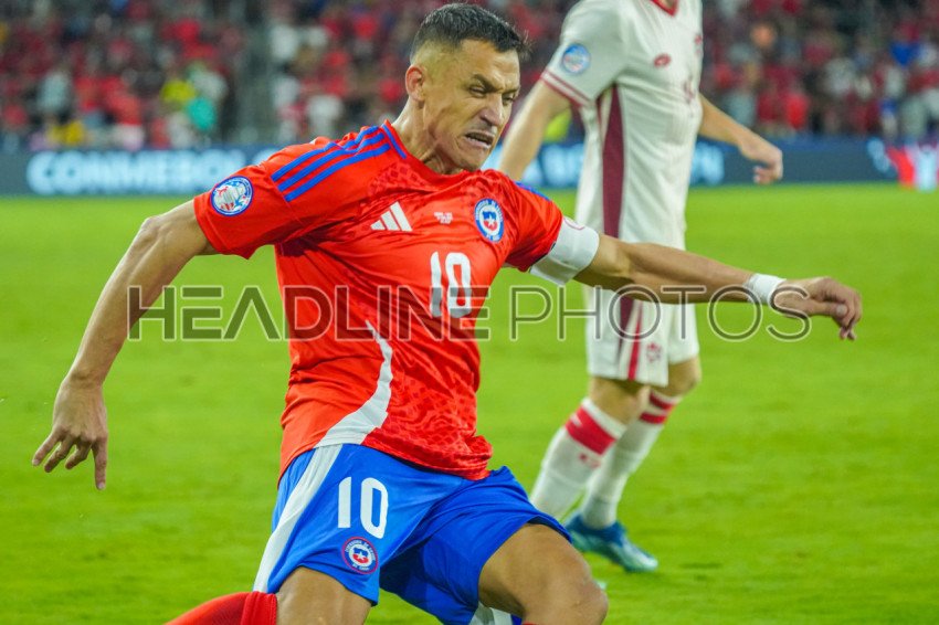 Orlando, Florida, USA, June 20, 2024, Chile forward Alexis Sánchez #10 attempt to score during the 2024 Copa America at Inter&Co Stadium. (Photo Credit: Marty Jean-Louis)