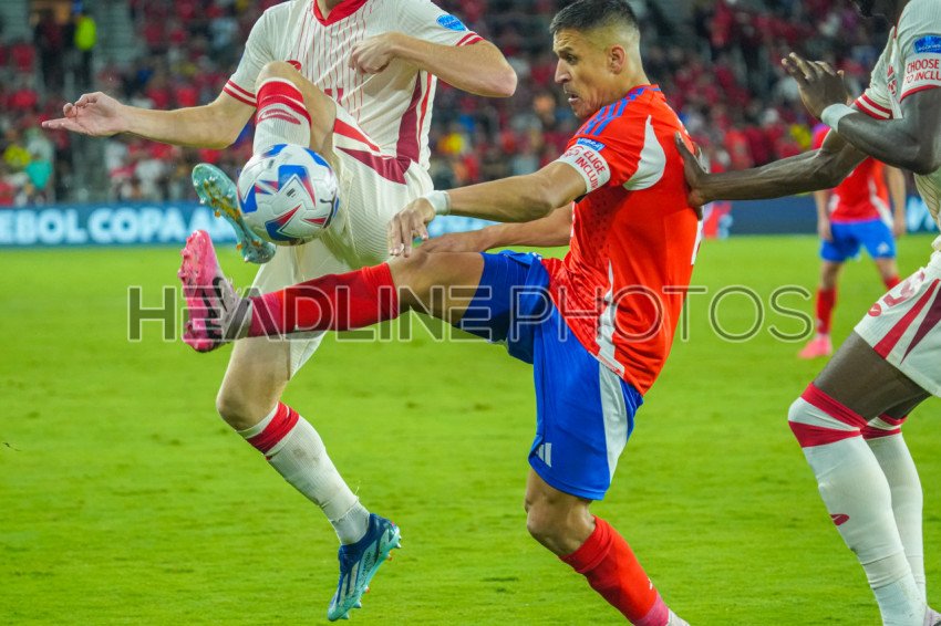 Orlando, Florida, USA, June 20, 2024, Chile forward Alexis Sánchez #10 attempt to score during the 2024 Copa America at Inter&Co Stadium. (Photo Credit: Marty Jean-Louis)