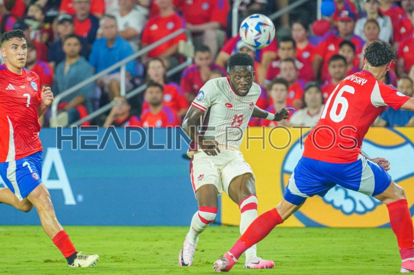 Orlando, Florida, USA, June 20, 2024, Canada's Alphonso Davies #19 look to make a pass during the 2024 Copa America at Inter&Co Stadium. (Photo Credit: Marty Jean-Louis)