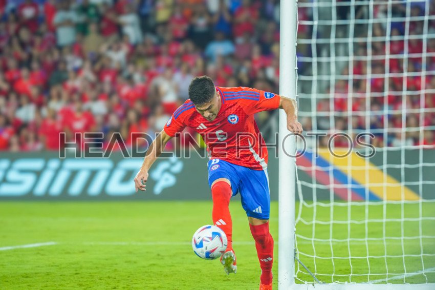 Orlando, Florida, USA, June 20, 2024, Chile player Thomas Galdames #6 kicks the ball out from the net to avoid the goal during the 2024 Copa America at Inter&Co Stadium. (Photo Credit: Marty Jean-Louis)