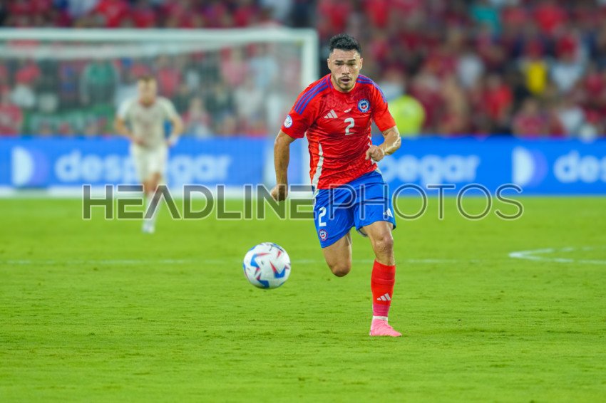 Orlando, Florida, USA, June 20, 2024, Chile player Gabriel Suazo #2 attempt to intercept a pass during the 2024 Copa America at Inter&Co Stadium. (Photo Credit: Marty Jean-Louis)
