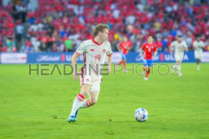Orlando, Florida, USA, June 20, 2024, Canada winger Jacob Shaffelburg #14 makes a pass during the 2024 Copa America at Inter&Co Stadium. (Photo Credit: Marty Jean-Louis)