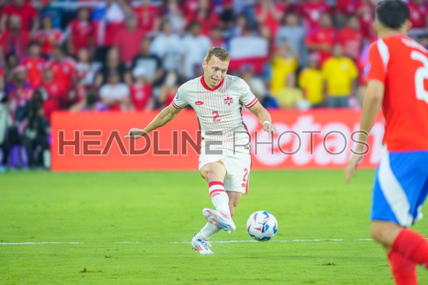 Orlando, Florida, USA, June 20, 2024, Canada defender Alistair Johnston #2 makes a pass during the 2024 Copa America at Inter&Co Stadium. (Photo Credit: Marty Jean-Louis)