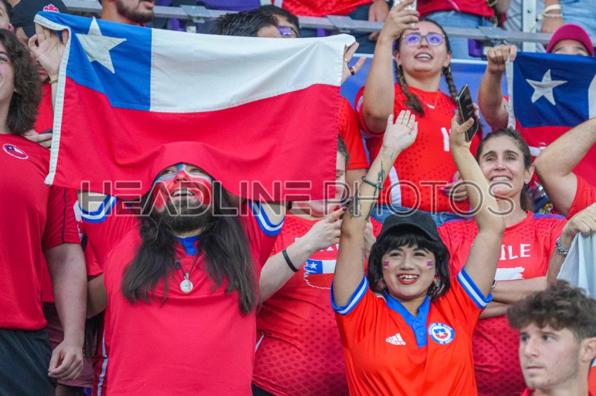 Orlando, Florida, USA, June 20, 2024, Chile fans holding the Chilean flag during the 2024 Copa America at Inter&Co Stadium. (Photo Credit: Marty Jean-Louis)