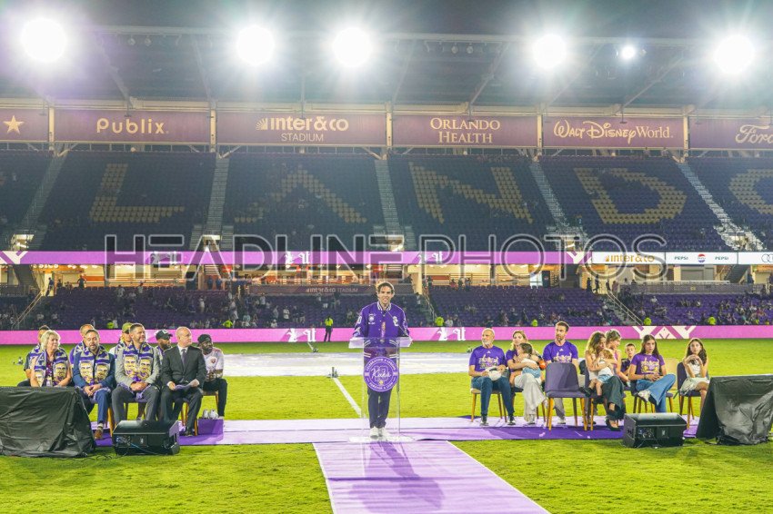 Orlando, Florida, USA, July 6, 2024, Ricardo Kaka speaking during the Legends Terrace Induction ceremony at Inter&Co Stadium. (Photo Credit: Marty Jean-Louis)
