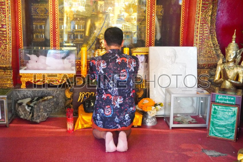 Buddhist worshipping at The gold Temple in Wat Prathat Doi Suthep, Thailand