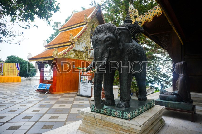 Elephant statue at The gold Temple in Wat Prathat Doi Suthep, Thailand