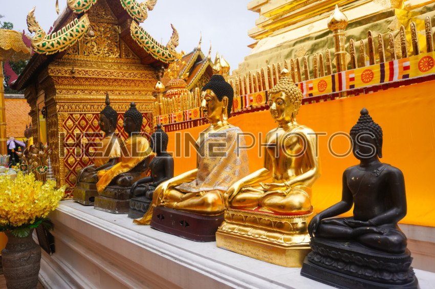 Statues at The gold Temple in Wat Prathat Doi Suthep, Thailand
