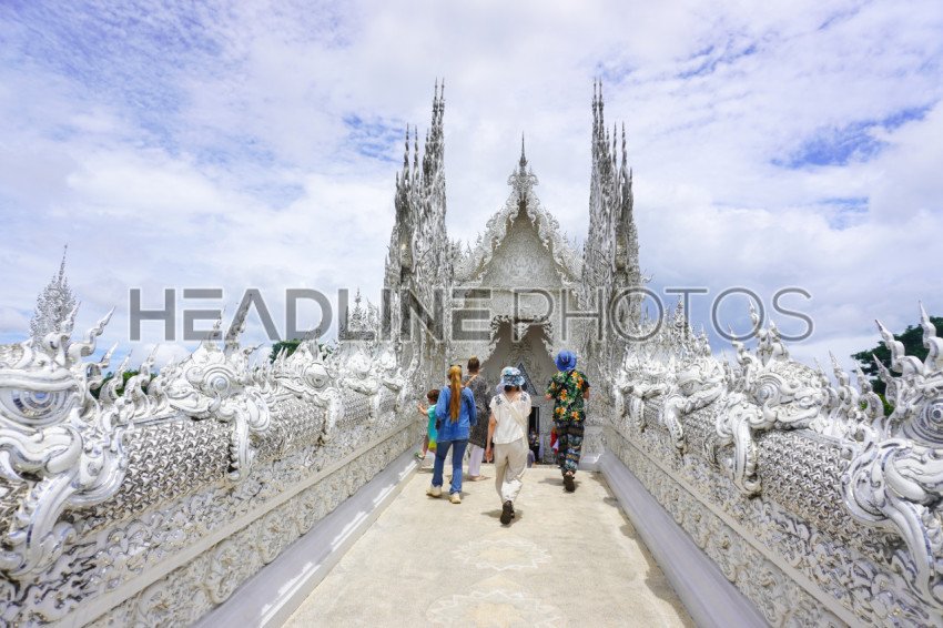 Entering the white Temple in WatRong Khun, Thailand