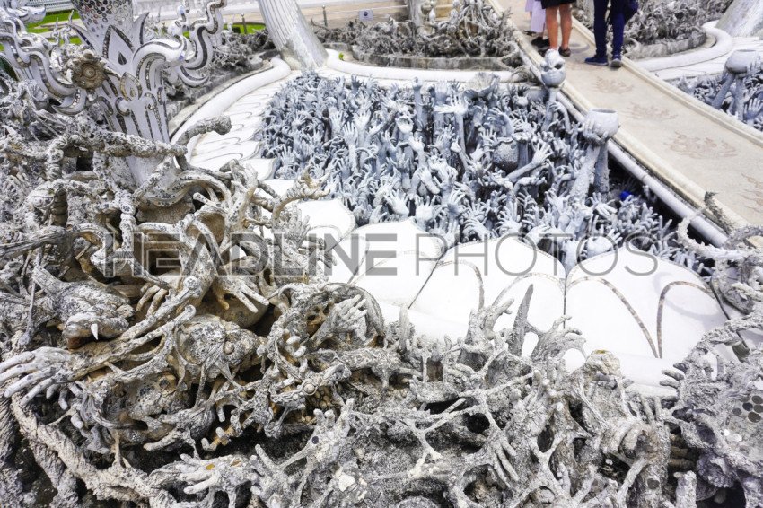Skulls at the entrace of the white Temple in WatRong Khun, Thailand
