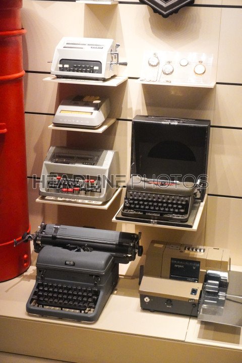 Old typewriters and other devices in the National Museum of Qatar In Doha, Qatar