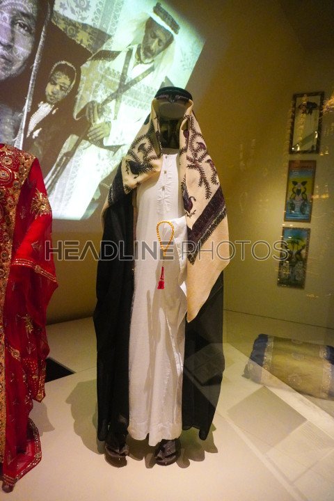 Traditional middle eastern clothes inside National Museum of Qatar In Doha, Qatar