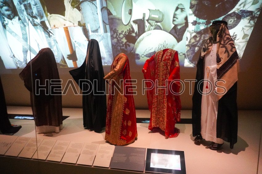 Traditional middle eastern clothes inside National Museum of Qatar In Doha, Qatar